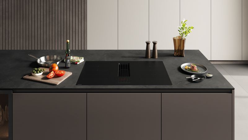 주방 천장에 별도의 후드 설치하지 않아도 되기 때문에 넓은 공간감을 가진 오픈형 주방 인테리어를 구현할 수 있고, 후드 설치에 드는 비용과 시간까지도 절감할 수 있다. 후드일체형 인덕션은 최근 유럽을 중심으로 큰 인기를 끌고 있으며 시장도 빠르게 성장하고 있다.