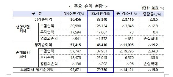 27일 금융감독원이 발표한 '2025년 상반기 보험회사 경영실적(잠정)'에 따르면 상반기 보험사들의 당기순이익은 7조9750억원으로 집계됐다.