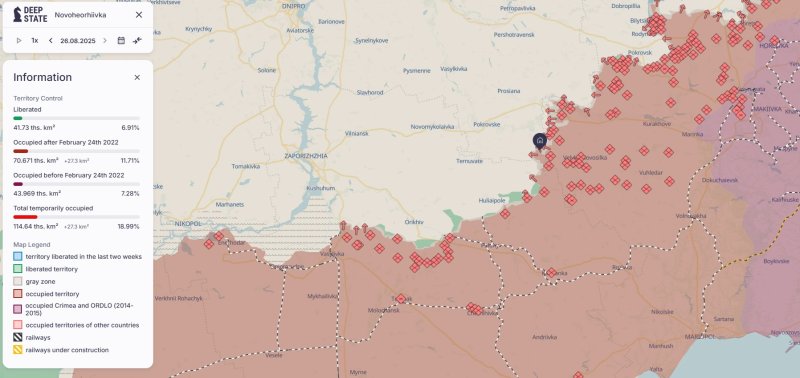 실시간 전장 지도를 제공하는 우크라이나의 비정부 자원봉사 조직 딥 스테이트 모니터링 그룹은 러시아군이 우크라이나 중부에 위치한 드니프로페트로우스크 자포리즈케와 노보헤오르히우카 마을을 점령했다고 보고했다. 딥 스테이트 모니터링 그룹이 러시아군이 중동부 정착촌을 점령했다고 인정한 건 이번이 처음이라고 키이우 인디펜던트는 전했다.