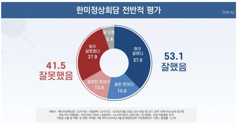 한미 정상회담의 성과 유무를 묻는 질문에선 응답자 60.7%가 성과가 있었다고 답했다.
