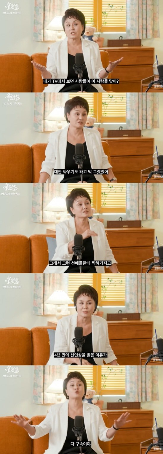 "그래서 방송국 들어가서 4년 만에 신인상을 받았다. 대부분 그 해나 그 다음 해에 신인상을 받는데 나는 늦게 받았다"고 말했다.