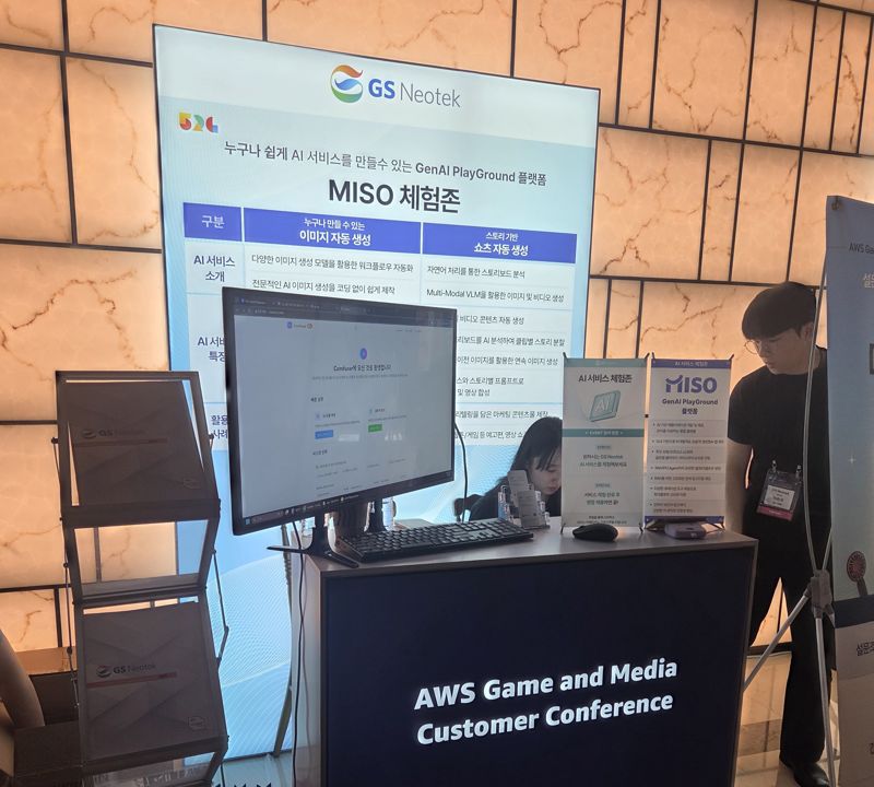 GS네오텍 관계자는 27일 서울 강남구 센터필드 조선팰리스에서 열린 ‘AWS 게임 앤 미디어 커스터머 컨퍼런스’에서 ‘미소’ 플랫폼에 대해 이 같이 소개했다. 이날 행사에서는 전우석 GS 네오텍 매니저가 ‘멀티모달 AI 이미지 생성: 게임·이미지의 판도를 바꿀 콘텐츠 혁신’이라는 주제로 강연을 하기도 했다.