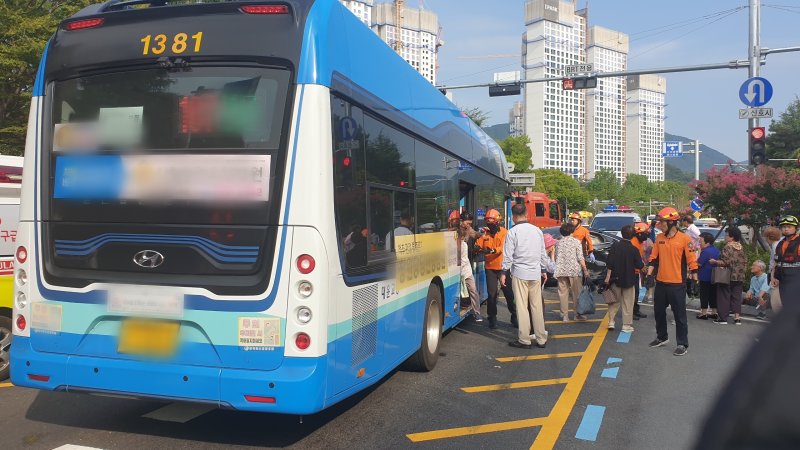 이 사고로 버스 승객 8명이 경상을 입고 인근 병원으로 이송됐다. 승용차에 동승한 2명도 통증을 호소했지만 병원에 이송되지 않았다.