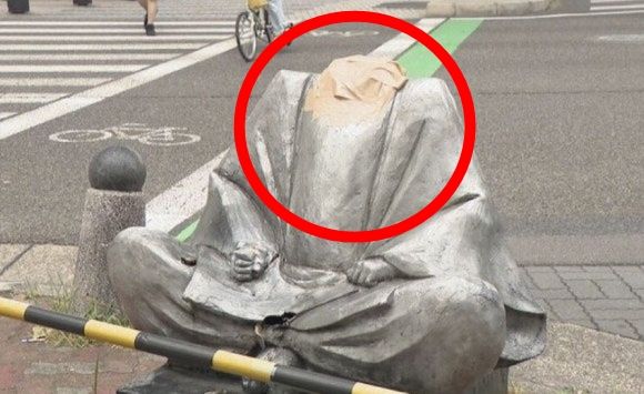 28일 NHK방송에 따르면 나고야시 니시구 한 상가 입구에 설치된 도요토미 동상 머리 부분이 떨어져 나간 상태로 발견됐다.