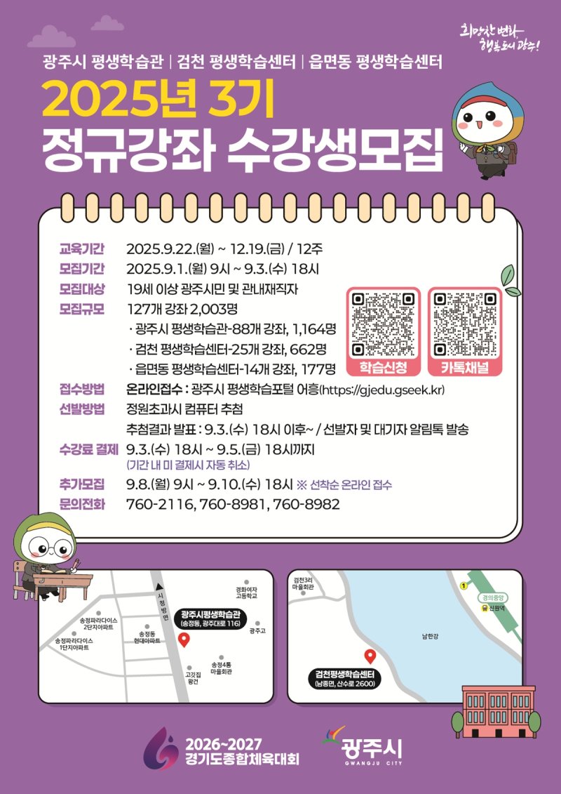 [경기광주=뉴시스] 신정훈 기자 = 경기 광주시가 내달 1~3일까지 총 127개 과정의 평생학습센터 수강생을 모집한다.