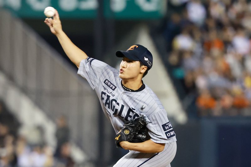 (서울=뉴스1) 권혁준 기자 = 한화 이글스 루키 정우주(19)가 한 이닝 동안 9개의 공으로 3개의 탈삼진을 솎아내는 진기록을 세웠다.