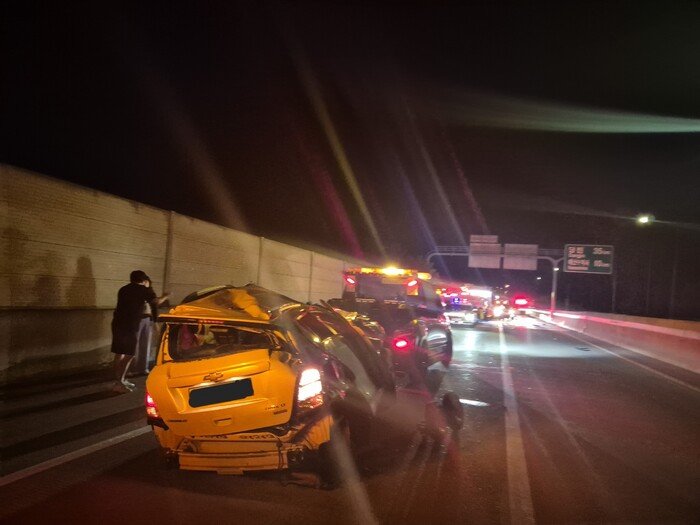 29일 고속도로순찰대 등에 따르면 전날 오후 11시20분께 목격자의 신고를 받고 출동한 구급대가 현장에서 중상을 입은 포터 운전자(72)와 경상을 입은 버스 승객 2명을 발견하고 병원으로 이송했다.