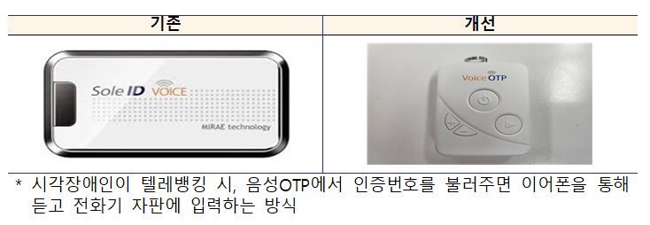 시각장애인용 OTP는 1회용 인증번호를 음성으로 안내하는 제품으로, 4개 주요 시중은행은 이달 기준 도입을 완료한 것으로 확인됐다. 나머지 대다수 은행들도 올해 3·4~4·4분기 중 도입할 계획이다.