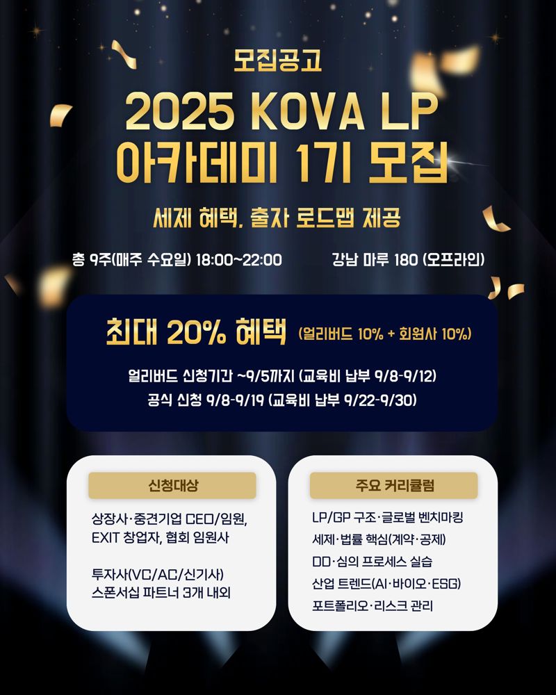 벤기협 관계자는 "전문 LP 풀의 확대는 벤처·스타트업 투자 활성화의 핵심 열쇠"라며 "LP 아카데미를 통해 민간 중심의 투자 참여층을 넓히고 지속 가능한 환경을 만들어 나가겠다"고 말했다.