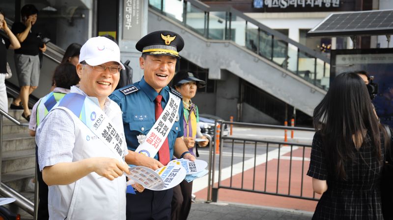 캠페인에는 광진경찰서장과 구청장을 포함한 각 기관 실무진과 모범운전자 광진지회 등 60여명이 참여했다. 이들은 출근길 주민들에게 △생활질서 △서민경제질서 △교통질서 준수에 대한 설명과 함께 물티슈, 부채 등 홍보 물품 1500개를 배부했다.
