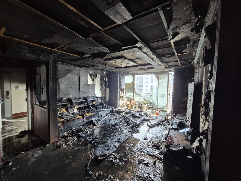(광주=뉴스1) 박지현 기자 = 29일 오후 3시 35분쯤 광주 북구 문흥동 15층 아파트 11층에서 불이 났다.