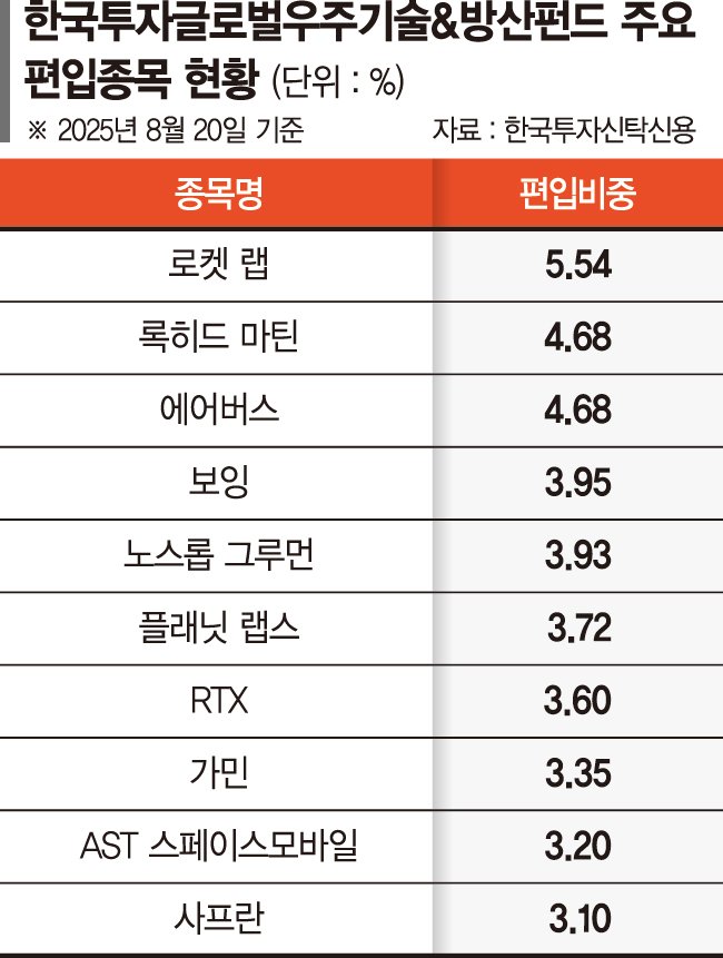 향후 운용 계획과 관련 한국투신운용은 미국의 '골든돔 프로젝트'와 유럽 방위비 확대 등 지정학적 갈등에 따라 우주기술 기업 및 방위 산업에 대한 투자가 지속적으로 확대되고 있는 점을 호재로 봤다. 특히 기존에 없던 기술력을 갖춘 기업에 집중할 예정이다.