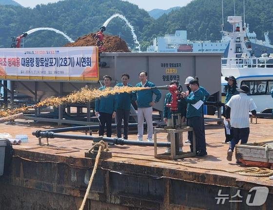 도는 적조 피해가 늘어날 것으로 예상됨에 따라 황토 살포와 물갈이 등 방제작업에 나서고 있다.
