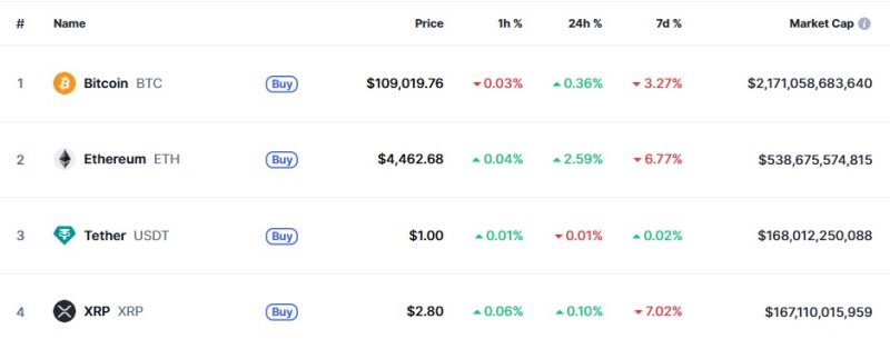 1일 오전 6시 20분 현재 글로벌 코인 시황 중계사이트인 코인마켓캡에서 리플은 24시간 전보다 0.10% 상승한 2.80달러를 기록하고 있다.
