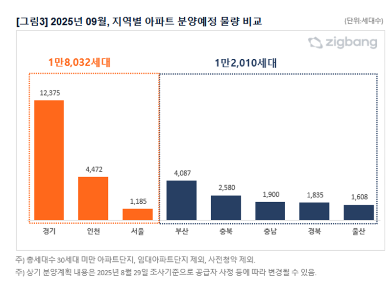 지방 주요 단지로는 △부산 동래구 사직동 힐스테이트사직아시아드 1068가구 △충남 아산시 모종동 아산모종서한이다음노블리스 1079가구 △경북 구미시 광평동 두산위브더제니스구미 1372 가구 등이 있다.