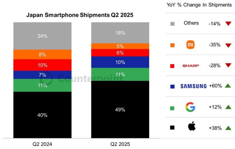 실피 자인 카운터포인트 리서치 수석 분석가는 "삼성전자가 강력한 갤럭시S25, 갤럭시A25 판매와 더 긴밀한 통신사 파트너십, 공격적 TV·디지털 마케팅에 힘입어 지속적으로 일본 시장에서 입지를 넓히고 있다"고 분석했다.