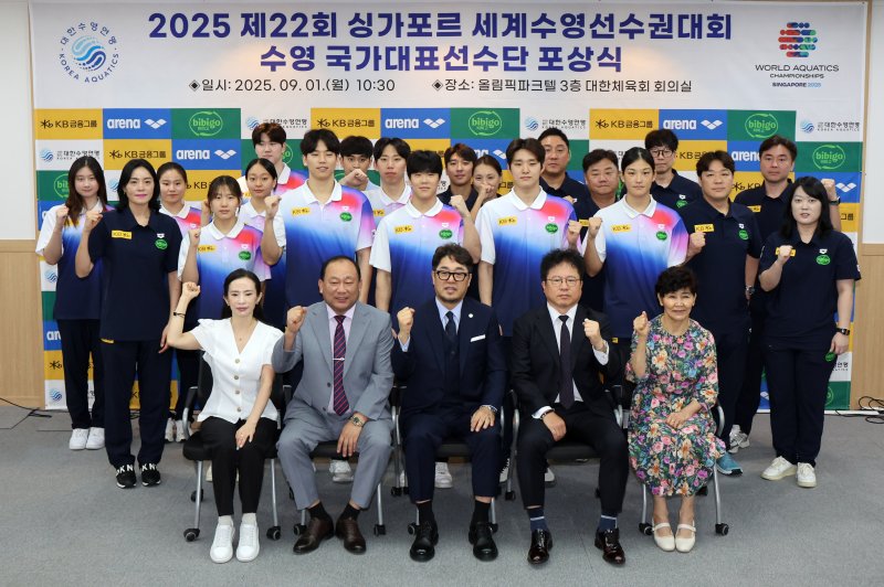 수영연맹은 1일 서울 올림픽파크텔 대한체육회 회의실에서 2025 FINA 세계수영선수권대회 수영 국가대표 선수단 포상금 수여식을 개최했다.