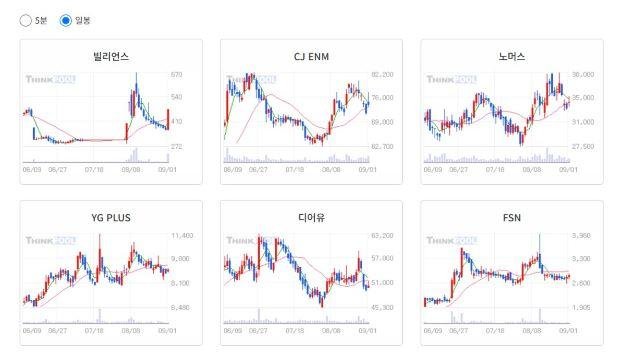 ※ [엔터] 이슈 관련 종목 : 빌리언스, CJ ENM, 노머스, YG PLUS, 디어유