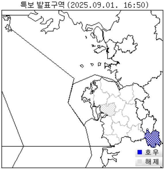 (금산=뉴스1) 최형욱 기자 = 대전지방기상청은 1일 오후 4시 50분을 기해 충남 금산에 호우주의보를 발령한다고 밝혔다.