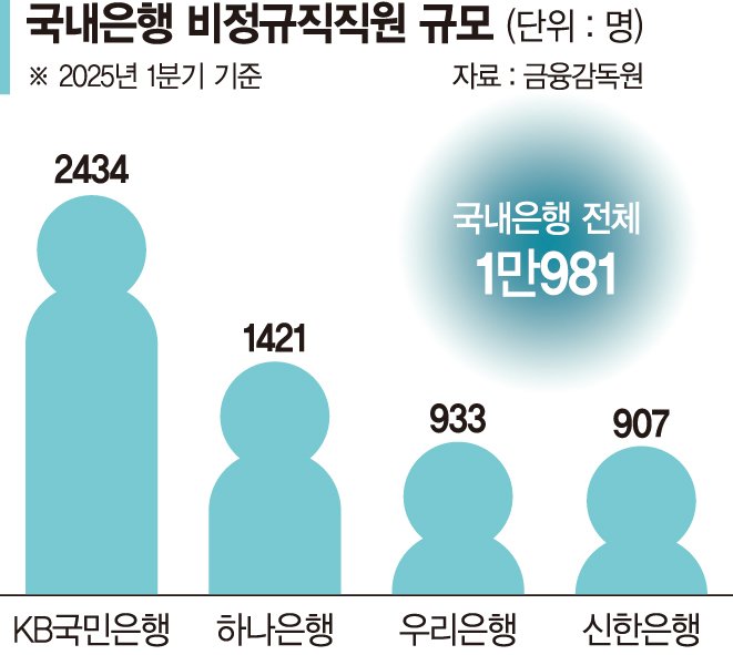 은행권은 그동안 비용 절감을 이유로 콜센터, 사무 지원, 전산 등 분야에 비정규직 활용을 확대해왔다. 노란봉투법이 시행되면 비정규직이 '저비용 인력'이 아닌, '교섭 주체'로 떠오른다. 은행 입장에서는 신규인력을 충원할 때 정규직과 비정규직을 어떻게 배분할지 전략적 고민이 불가피해진다.