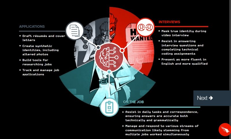 특히 이들은 생성형 AI를 통해 공격 캠페인 전 과정을 자동화했다. AI 기반 가짜 이력서, 딥페이크 인터뷰, 신분 위조를 통한 과제 수행 등 기업 내부자를 파고들었다.