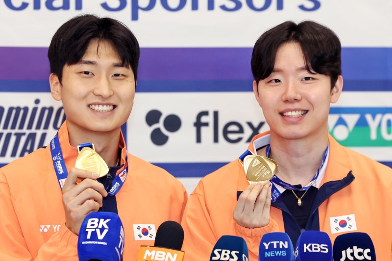 배드민턴 세계선수권 남자 복식 정상에 오른 서승재(오른쪽)와 김원호가 2일 오후 인천국제공항을 통해 귀국해 금메달을 들어보이고 있다. 2025.9.2/뉴스1 ⓒ News1 민경석 기자 배드민턴 세계선수권 남자 복식 정상에 오른 서승재가 2일 오후 인천국제공항을 통해 귀국하고 있다. 2025.9.2/뉴스1 ⓒ News1 민경석 기자 배드민턴 세계선수권 남자 복식 정상에 오른 김원호가 2일 오후 인천국제공항을 통해 귀국하고 있다. 2025.9.2/뉴스1 ⓒ News1 민경석 기자 배드민턴 세계선수권 남자 복식 정상에 오른 서승재(오른쪽)와 김원호가 2일 오후 인천국제공항을 통해 귀국해 소감을 밝히고 있다. 2025.9.2/뉴스1 ⓒ News1 민경석 기자 배드민턴 세계선수권 남자 복식 정상에 오른 서승재(오른쪽)와 김원호가 2일 오후 인천국제공항을 통해 귀국해 소감을 밝히고 있다. 2025.9.2/뉴스1 ⓒ News1 민경석 기자 배드민턴 세계선수권 남자 복식 정상에 오른 서승재와 김원호가 2일 오후 인천국제공항을 통해 귀국해 금메달을 들어보이고 있다. 2025.9.2/뉴스1 ⓒ News1 민경석 기자 '셔틀콕 여제' 안세영이 2일 오후 인천국제공항을 통해 귀국하고 있다. 2025.9.2/뉴스1 ⓒ News1 민경석 기자 '셔틀콕 여제' 안세영이 2일 오후 인천국제공항을 통해 귀국해 로니 아구스티누스 코치로부터 격려를 받고 있다. 2025.9.2/뉴스1 ⓒ News1 민경석 기자 '셔틀콕 여제' 안세영이 2일 오후 인천국제공항을 통해 귀국하고 있다. 2025.9.2/뉴스1 ⓒ News1 민경석 기자 '셔틀콕 여제' 안세영이 2일 오후 인천국제공항을 통해 귀국해 소감을 밝히고 있다. 2025.9.2/뉴스1 ⓒ News1 민경석 기자 '셔틀콕 여제' 안세영이 2일 오후 인천국제공항을 통해 귀국하고 있다. 2025.9.2/뉴스1 ⓒ News1 민경석 기자 프랑스 파리에서 열린 '2025 세계개인배드민턴선수권대회'를 마치고 귀국한 배드민턴 대표팀 선수 및 코치진이 2일 오후 인천국제공항을 통해 귀국해 기념촬영을 하고 있다. 2025.9.2/뉴스1 ⓒ News1 민경석 기자 배드민턴 세계선수권 남자 복식 정상에 오른 서승재와 김원호가 2일 오후 인천국제공항을 통해 귀국해 금메달을 들어보이고 있다. 2025.9.2/뉴스1 ⓒ News1 민경석 기자 (서울=뉴스1) 민경석 기자 = 배드민턴 세계선수권 남자 복식 정상에 오른 서승재와 김원호가 2일 오후 인천국제공항을 통해 귀국했다.