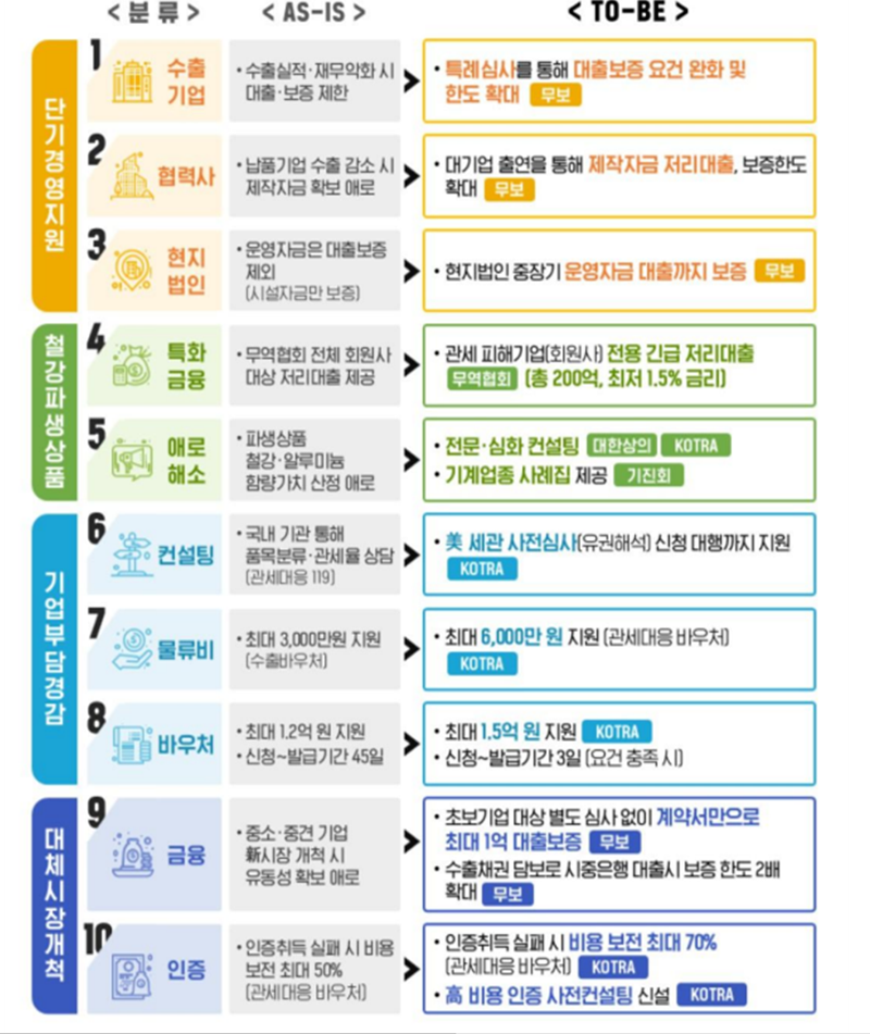 이와 함께 관세대응 바우처 한도를 1억2000만원에서 1억5000만원으로 확대하고, 패스트트랙을 도입하해 바우처 발급 소요 기간은 기존 45일에서 3일로 대폭 축소할 예정이다.