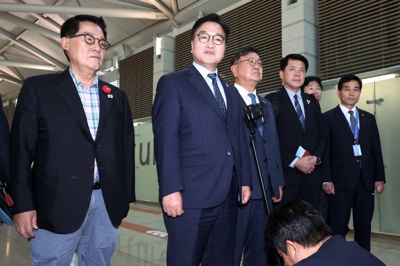 우 의장은 기자들과의 질의응답 전 출국 인사말을 통해서는 "올해는 우리나라로 보면 광복 80주년이고 중국으로 보면 항전 승리 80주년을 특별히 기념하는 해"라며 "역사를 공유한다는 건 양국 유대감의 뿌리다. 그런 점에서 축하해주기 위해 가는 것"이라고 했다.