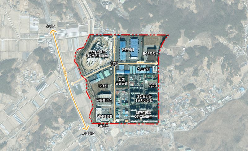 대전종합물류단지는 2003년 유성구 대정동 일원 46만㎡ 규모로 조성돼 현재 한진 대전스마트 메가허브터미널과 모다아울렛 등 25개 물류·유통기업이 입주한 지역 핵심 거점이다. 그러나 준공 후 20년이 지나면서 대형 화물차 진출입 불편 및 노후 기반시설 등 개선 필요성이 꾸준히 제기돼 왔다.