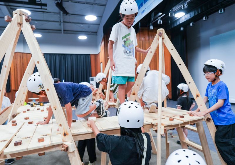 인디언 천막은 아카시아 나무로 만든 볼트와 너트를 이용해 어린이와 성인 자원봉사자가 함께 조립하는 방식이다.