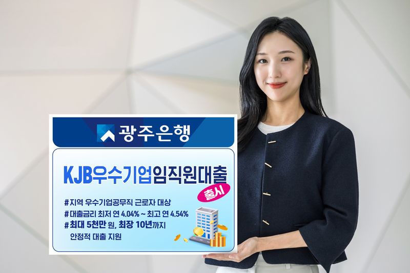 【파이낸셜뉴스 광주=황태종 기자】광주은행은 지역 우수기업체 임직원과 공무직 근로자를 위한 'KJB우수기업 임직원 대출'을 출시했다고 3일 밝혔다.