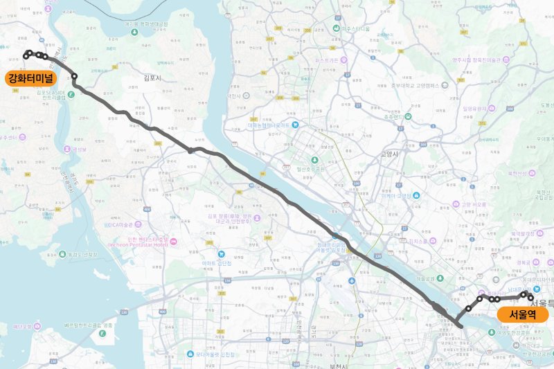 정차 지점은 강화 5곳, 김포 1곳, 서울 6곳으로 구성된다. 도입 시 주민 이동 시간이 50~60분 이상 단축될 전망이다.