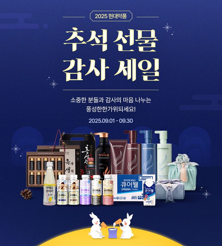 [파이낸셜뉴스] 현대약품이 다가오는 추석을 맞아 자사 통합몰에서 인기 제품을 최대 81% 할인 판매한다고 3일 밝혔다.