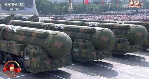 중국은 이날 베이징 톈안먼 광장에서 열린 '중국인민 항일전쟁 및 세계 반파시스트 전쟁 승리(전승절) 80주년' 열병식에서 북중러 등 각국 정상이 지켜보는 가운데 DF-5C를 선보였다.