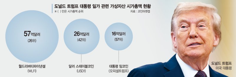 3일 글로벌 가상자산 정보플랫폼 코인마켓캡에 따르면 트럼프 패밀리 3대 가상자산인 △WLFI(26위) △USD1(42위) △오피셜트럼프(57위)가 글로벌 가상자산 시총 상위권에 진입했다.