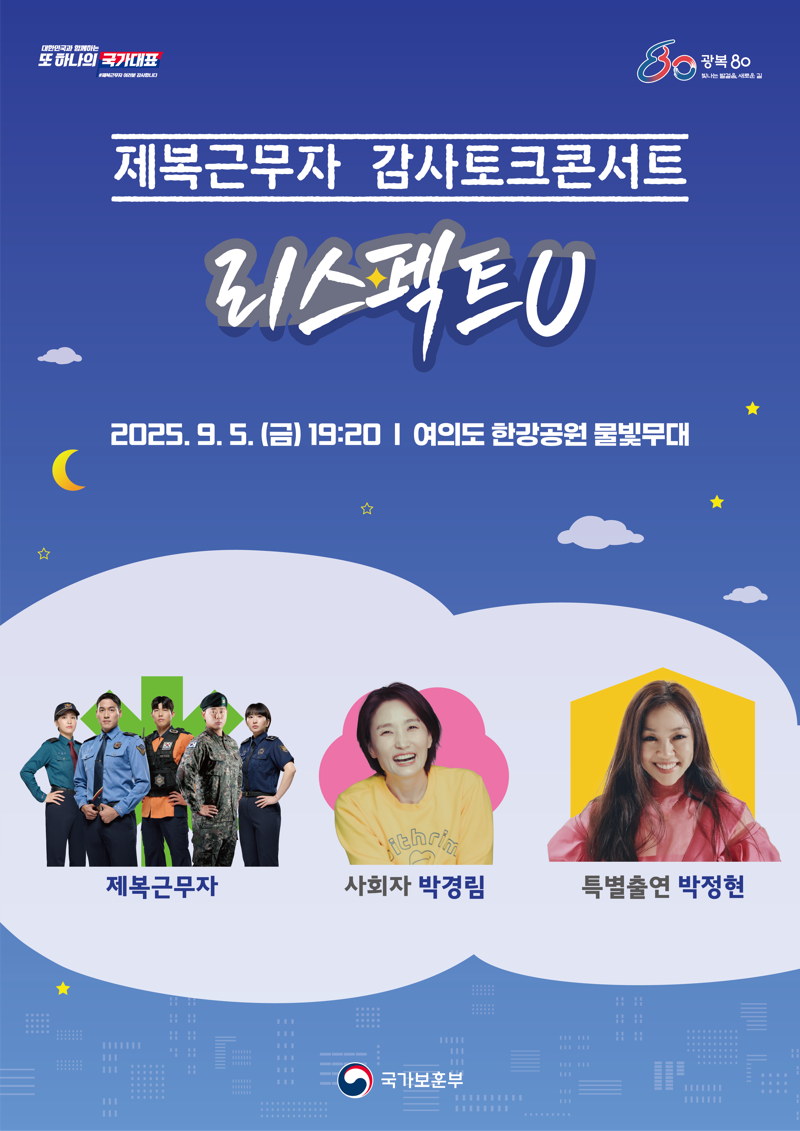 토크콘서트에는 70여 명의 제복근무자가 참여하며, 군인·경찰·소방관·해양경찰·교도관 등 대표 5명은 임무별로 현장의 생생한 이야기를 들려준다. 시민 인터뷰 영상도 상영해 제복근무자들에게 감사와 응원의 마음을 전한다.