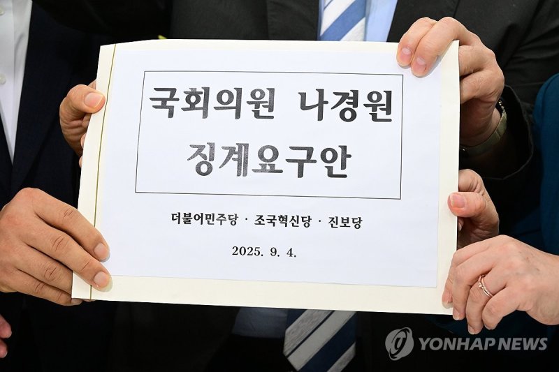 (서울=연합뉴스) 박재하 기자 = 더불어민주당, 조국혁신당, 진보당은 4일 나경원 국민의힘 의원이 초선 의원을 향해 가만히 있으라고 발언해 품위유지 의무를 위반했다면서 나 의원에 대한 징계안을 국회에 제출했다.