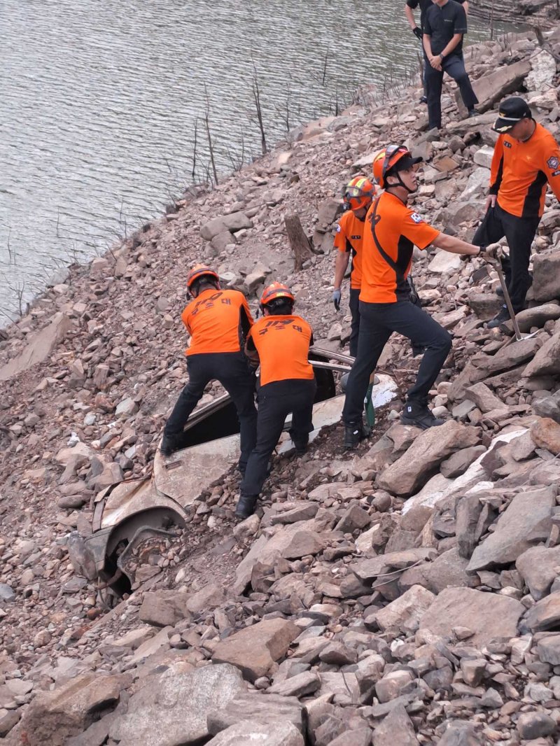 4일 강원도소방본부 등에 따르면 전날 오후 5시 32분쯤 강릉시 성산면 오봉저수지 경사면에서 매몰된 티코 승용차를 발견했다.