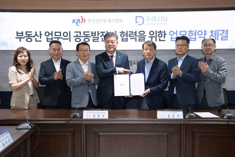 한국공인중개사협회는 4일 서울 관악구 중앙회에서 두레시닝과 '부동산 업무 공동발전과 협력 업무협약'을 맺고 회원 보유 부동산 매물에 대한 가치평가 등 각종 정보분석 서비스를 제공한다고 밝혔다.