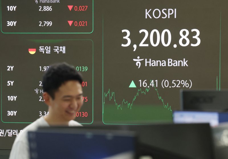 4일 한국거래소에 따르면 이날 코스피 지수는 전장 대비 0.52% 오른 3200.83에 거래를 마쳤다. 코스피 지수가 종가 기준 3200선을 회복한 건 지난 8월 25일 이후 8거래일 만이다. 이날 코스피는 전장 대비 0.14% 오른 3188.84에 장을 시작했다.