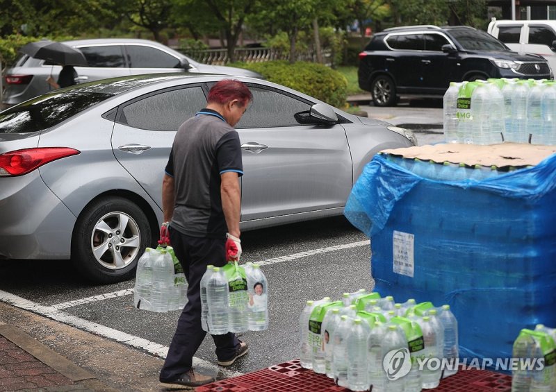 (강릉=연합뉴스) 강태현 기자 = "수돗물 아끼려고 정수기는 안 쓴 지 오래예요. 오늘 받은 생수로 몇 주 정도는 버틸 수 있을 것 같아요."