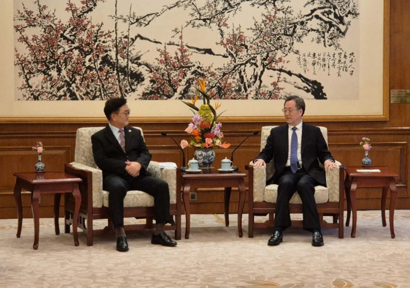 딩 부총리는 "중국은 한국과 함께 양 정상의 합의를 잘 이행하고 양국 간의 소통과 왕래를 강화하고 상호 신뢰를 증진해 협력을 촉진함으로써 양 국민들에게 더 많은 복지를 가져다줄 뜻이 있다"고 말했다.