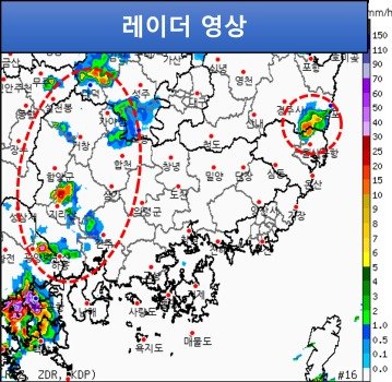 주요 지점 강수량은 진주 19.6㎜, 창녕 17.5㎜, 사천 15㎜, 의령 3.4㎜ 등이다.