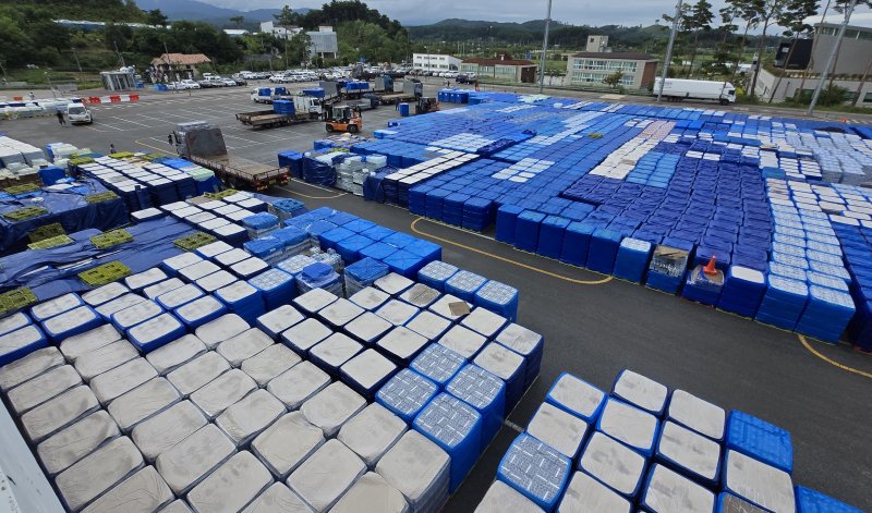 강릉시에 따르면 전국에서 답지한 생수는 247만 병으로 28만병이 이미 배부됐으며 나머지 219만병의 생수를 18개 면·동별 인구수에 따라 배정했다.