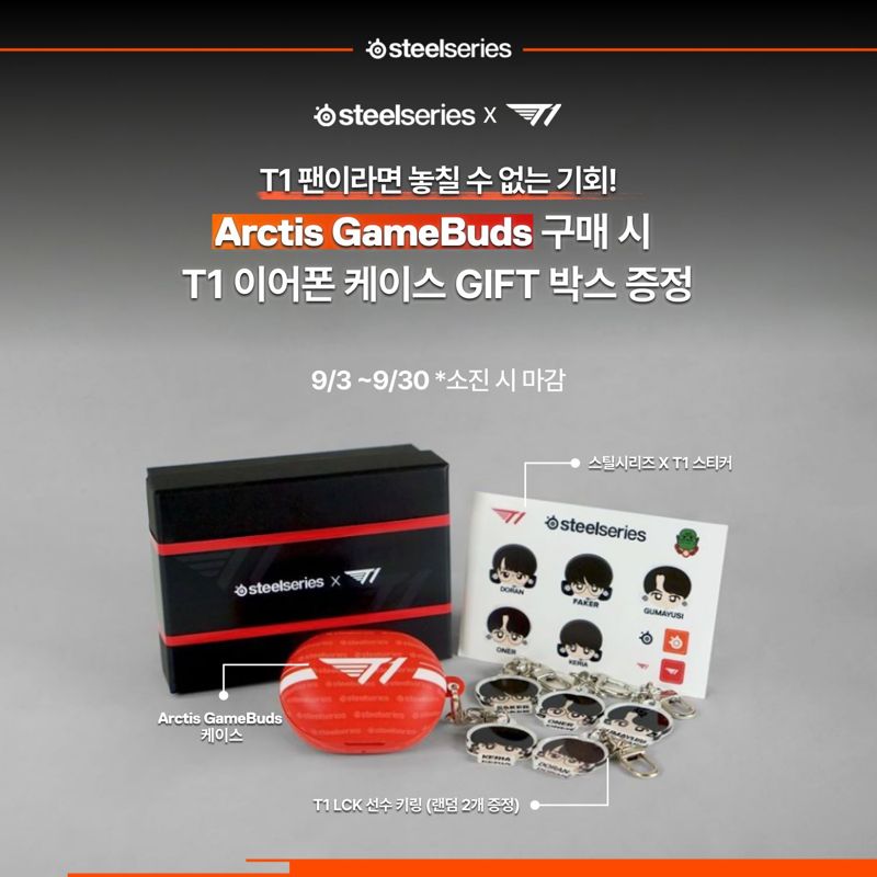 스틸시리즈가 ‘아크티스 게임버즈’ 구매 시 T1 이어폰 케이스 기프트 박스를 증정하는 이벤트를 진행한다고 5일 밝혔다.