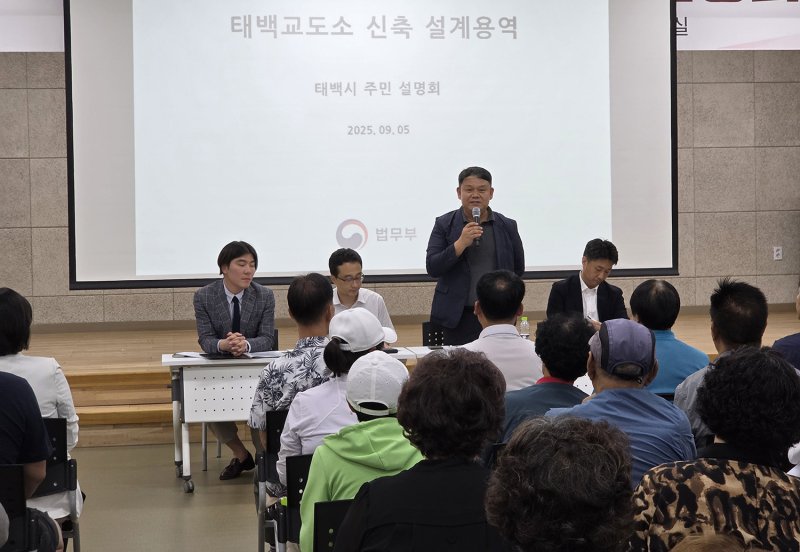 법무부는 5일 태백시청 대회의실에서 열린 ‘태백교도소 신축사업 주민설명회’에서 사업 추진 경과와 향후 계획을 주민들에게 설명했다. 이 자리에는 지역 주민과 공무원 등 130여 명이 참석해 교도소 건립에 대한 관심을 보였다.