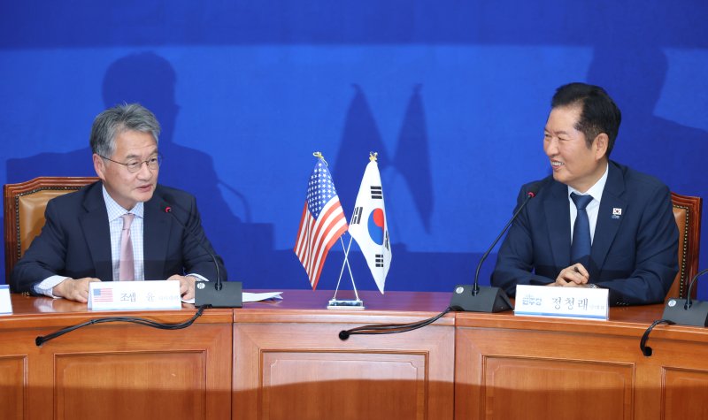 [파이낸셜뉴스] 여야 대표는 5일 조셉 윤 주한미국대사 대리를 만나 지난달 25일 한미정상회담을 두고 상반된 평가를 내놨다. 정청래 더불어민주당 대표는 한미회담이 성공했다 자평하며 오는 23일 2차 한미회담 기대를 내비쳤고, 장동혁 국민의힘 대표는 한미 공동성명이 없어 성과가 있는지 의문이라고 지적했다.