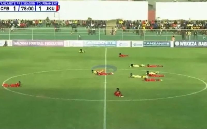 공개된 경기 영상을 보면 후반전에 양 팀이 1대1로 팽팽하게 맞서고 있는 가운데 갑자기 선수들이 바닥에 엎드리기 시작했다. 이어 심판, 볼보이, 중계 카메라맨까지 바닥에 엎드리면서 경기는 중단됐다.
