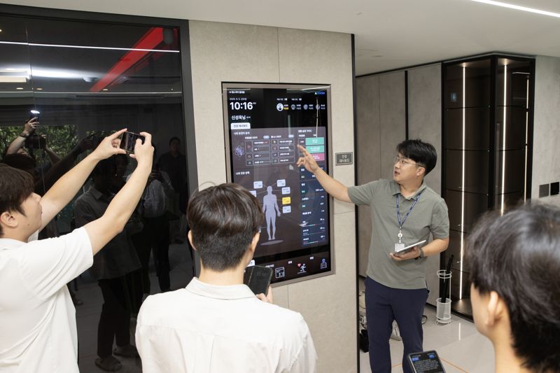 세 번째로 방문한 곳은 올라이프케어하우스 체험 공간으로, 운동·수면·식단 관리, 응급 상황 대응, 주거 환경 제어 등 입주민 생활 전반을 통합 관리하는 미래형 웰빙 주거 모델이다.