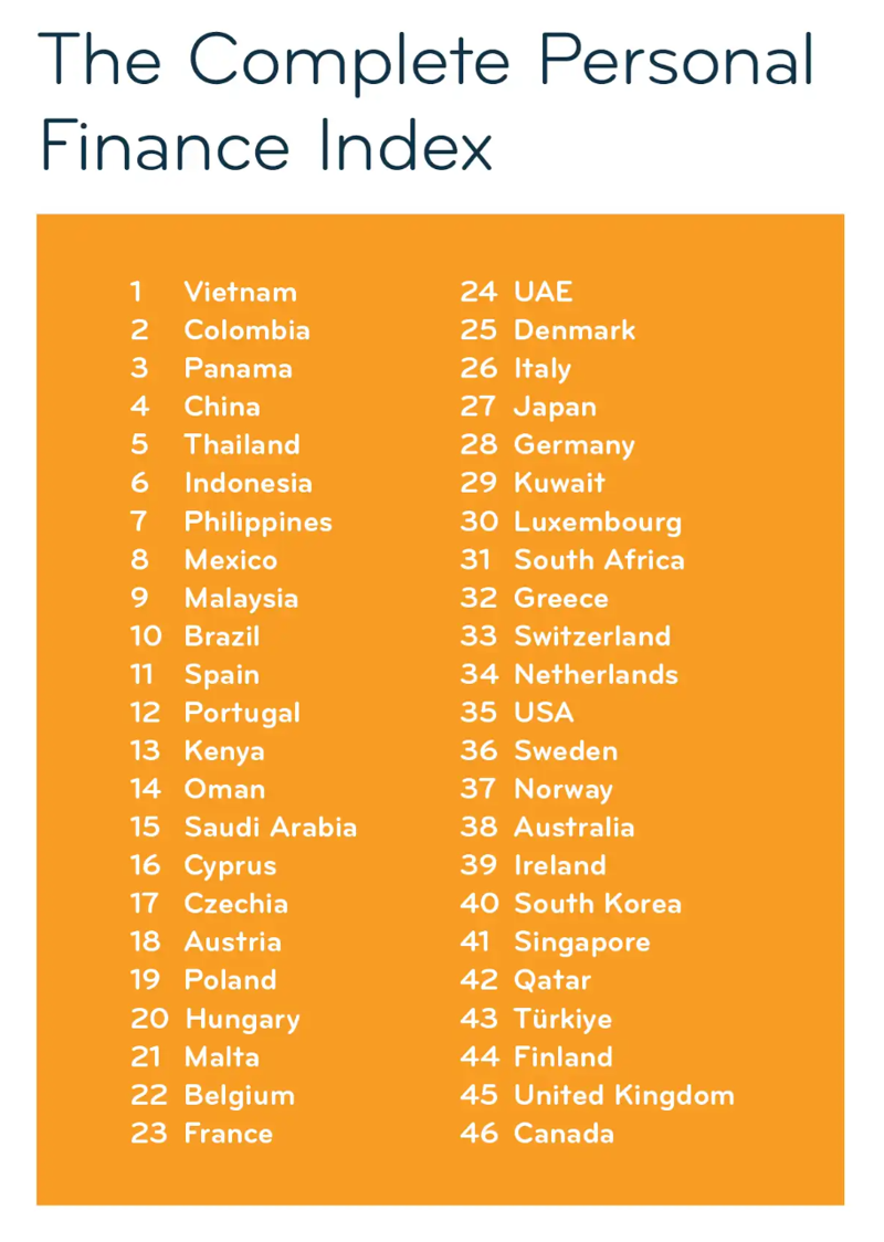 연구 결과에 따르면 1위를 차지한 베트남에서는 응답자의 89%가 일반적인 생활비에 만족한다고 답했다. 응답자의 87%는 가계 가처분 소득이 편안한 삶을 살기에 충분하거나 그 이상이라고 말했다. 이는 전체 평균치(각각 40%, 69%)보다 높은 수치다.